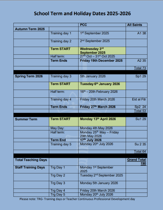Term Dates - 2025 2026
